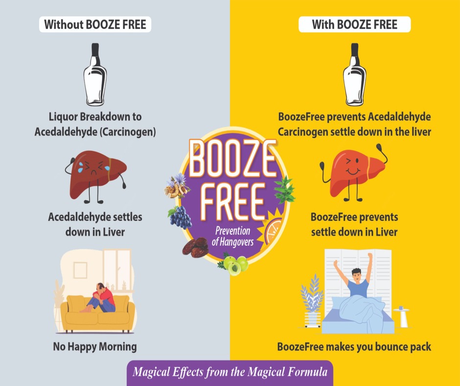 Say goodbye to hangovers with BOOZEFREE—your ultimate hangover cure. For more information and to purchase, click the link https://amzn.in/d/5wJEHlz